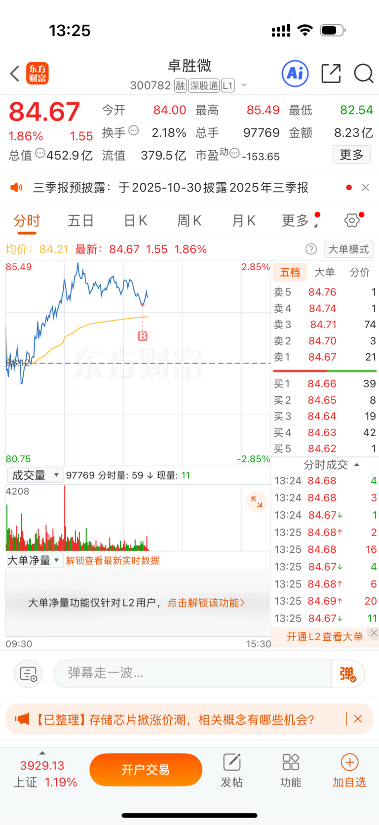 84.50介入$卓胜微(SZ300782)$ #强势机会# #实盘记录# #投资干货# #投资随笔# #股市怎么看#