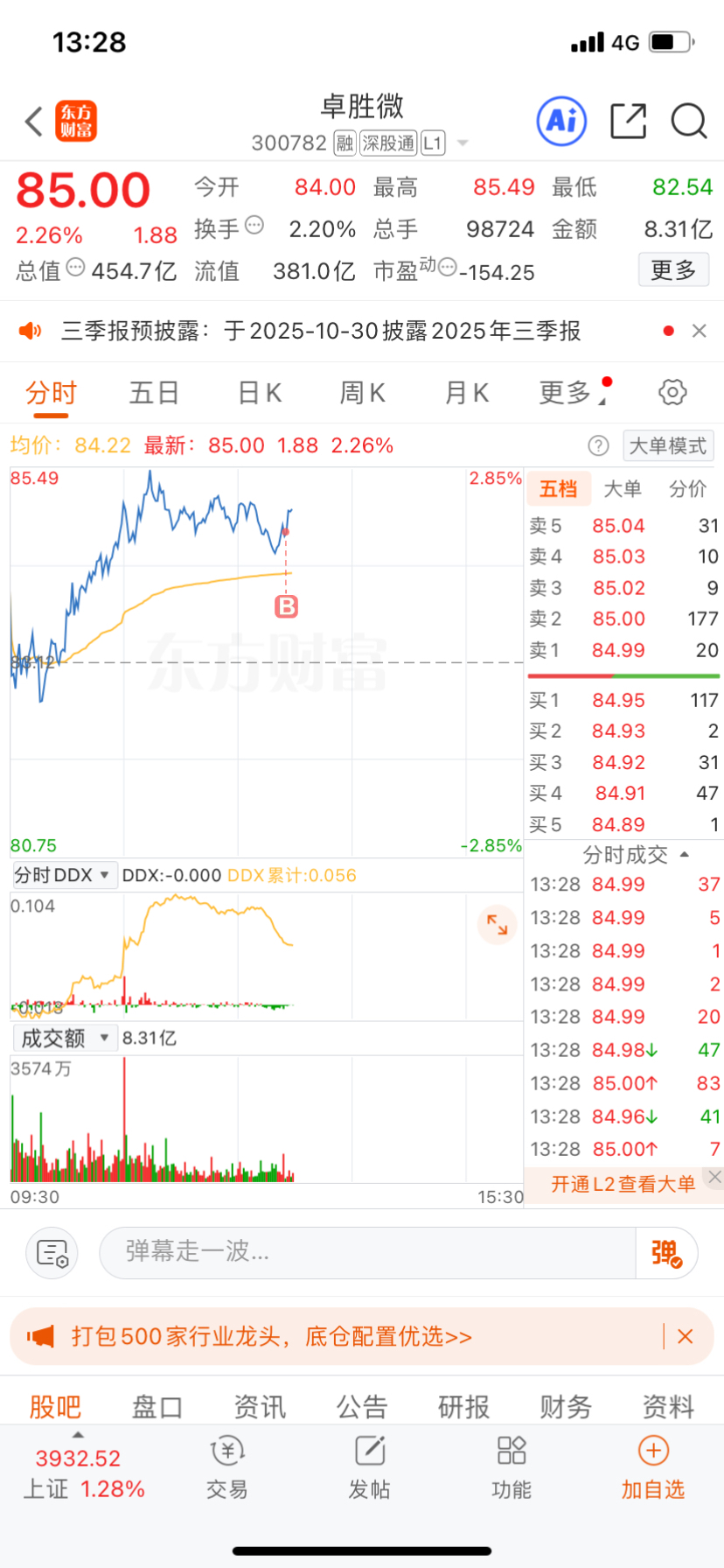 午盘选择介入$卓胜微(SZ300782)$ 值得期待#强势机会# #实盘记录# #投资干货# #投资随笔#