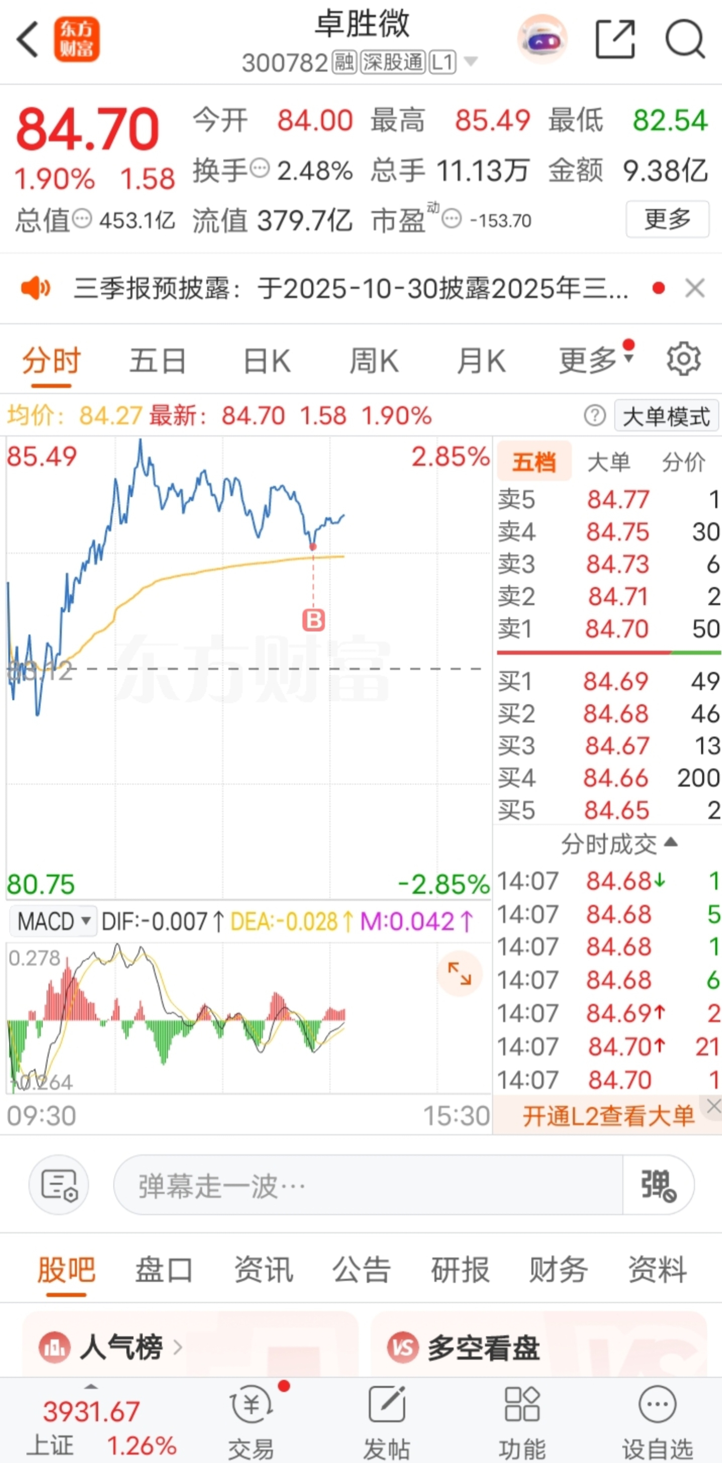 午盘介入了个股$卓胜微(SZ300782)$ 大胆介入一波