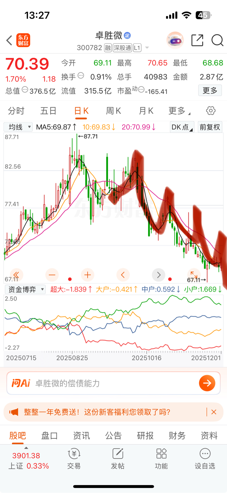 $卓胜微(SZ300782)$ 这走势太搞笑