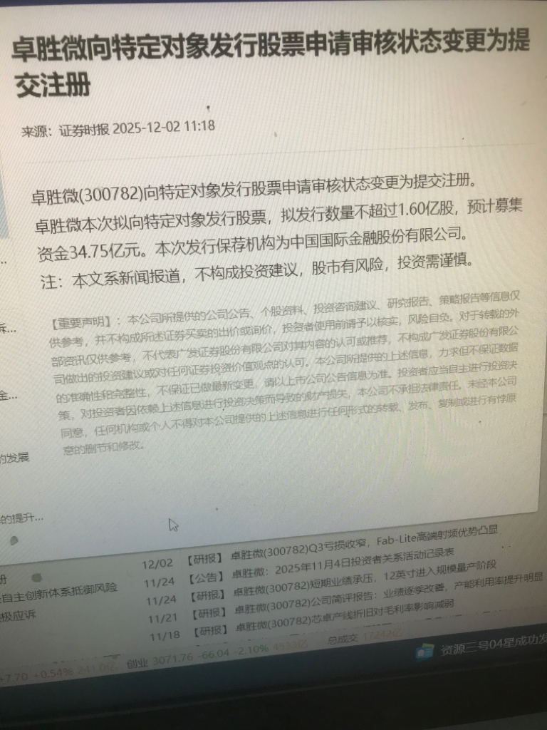 $卓胜微(SZ300782)$ 定增价大概21元附近,现价73元还有的跌估计到30元止跌