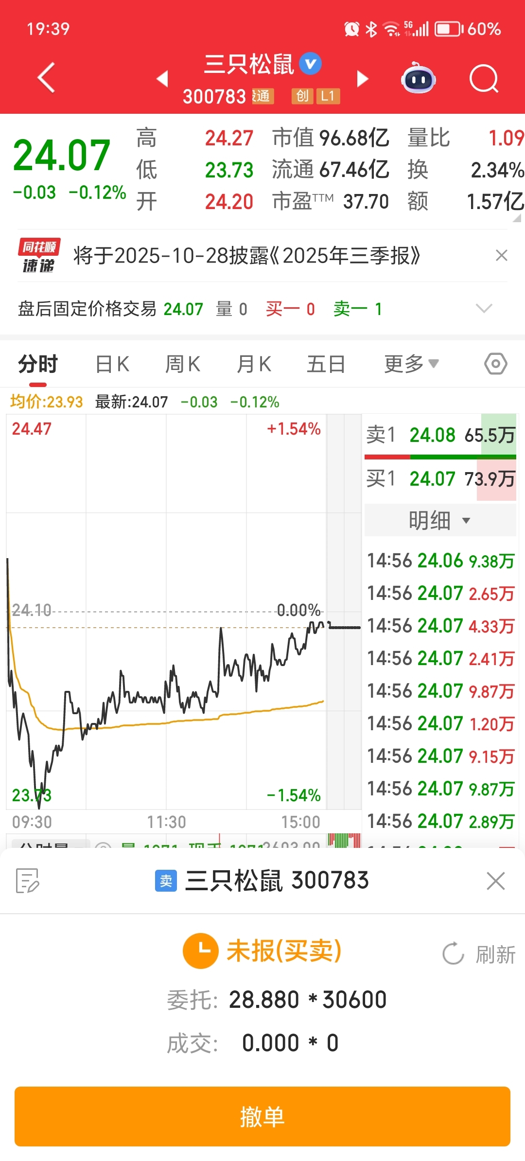 $三只松鼠(SZ300783)$ 挂单挂单,万一明天太阳打西边出来了呢