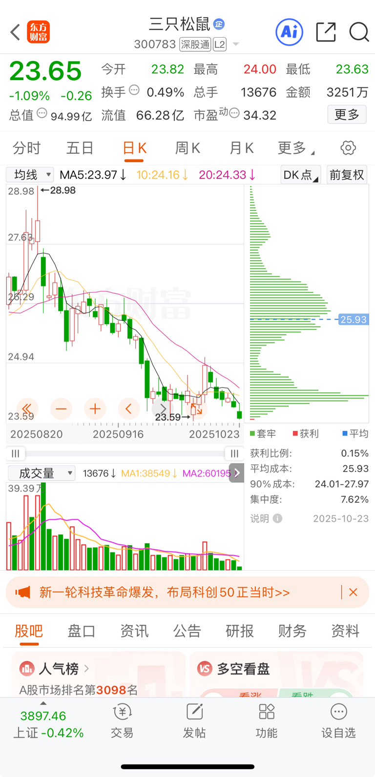 $三只松鼠(SZ300783)$ 全部套牢,多黑啊。
