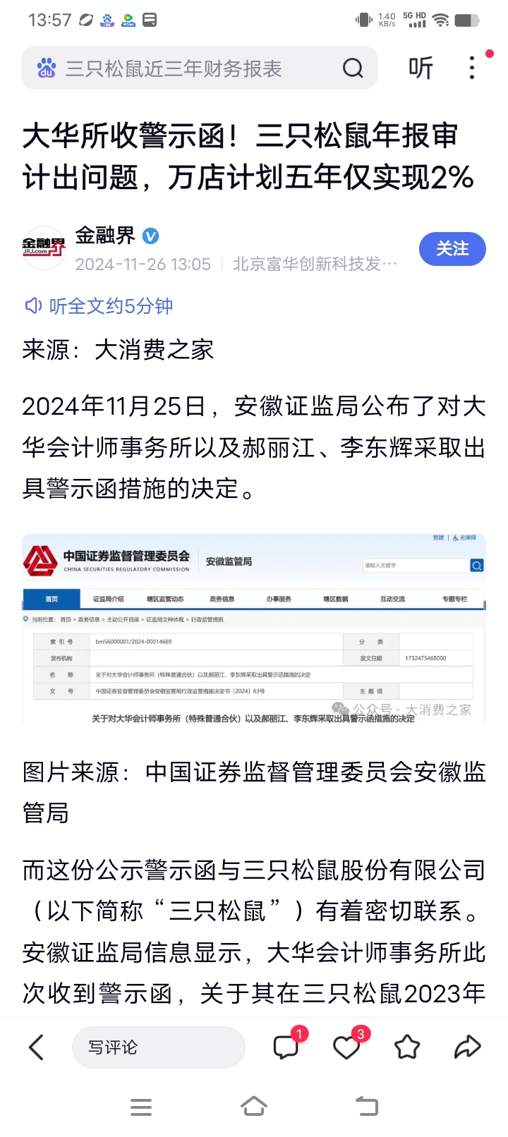 $三只松鼠(SZ300783)$ 你们是真的不看信息的吗,还不知道为什么下跌?接下来坐等退市