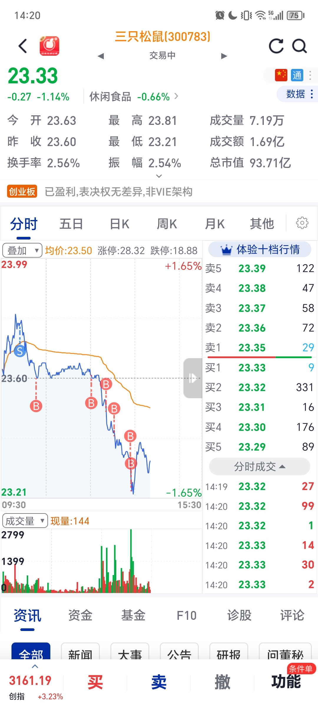 $三只松鼠(SZ300783)$ 足足跌了10个月,想退市么?今天够谨慎的了,没想到还是天天逃不了被割