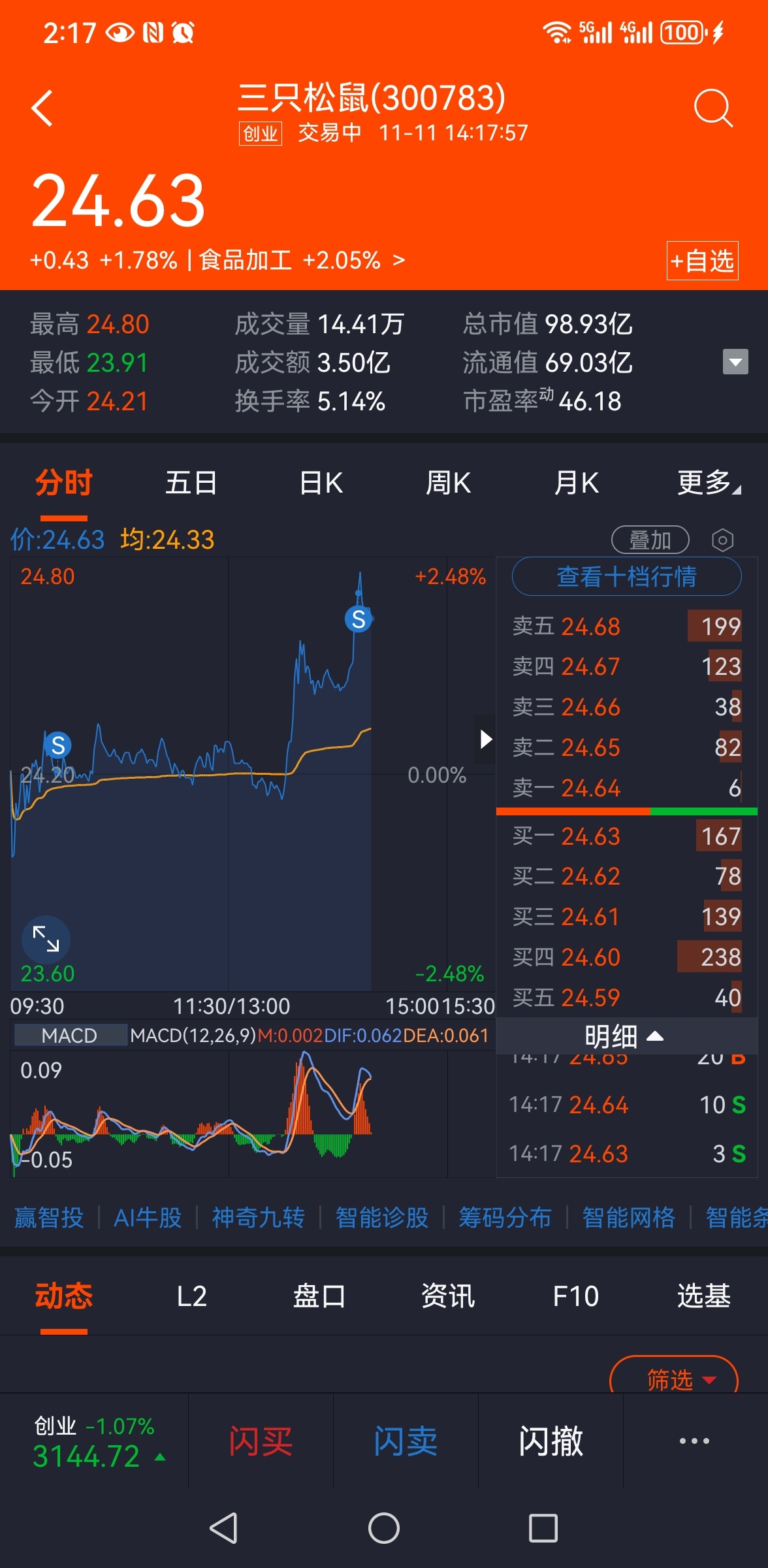 $三只松鼠(SZ300783)$ 先落袋为安一部分