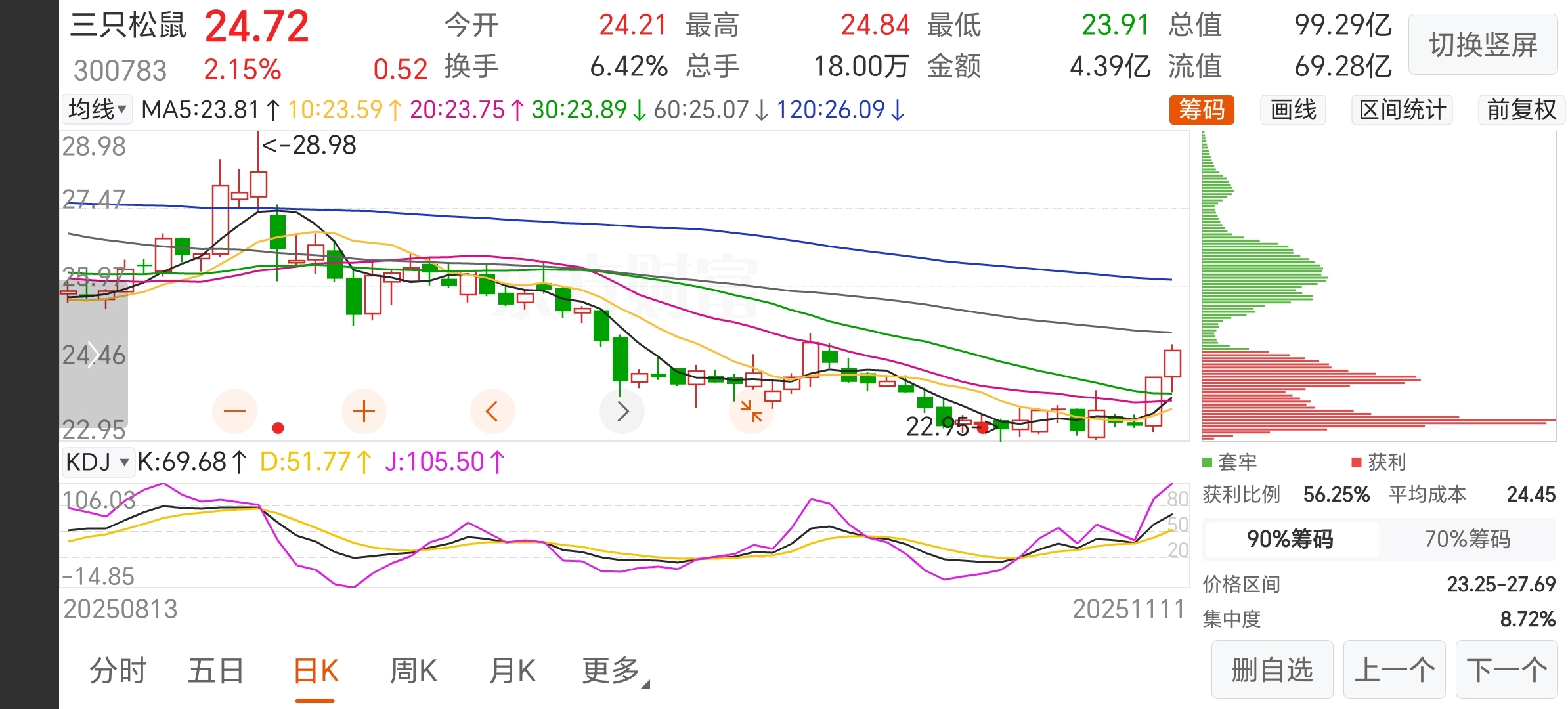 $三只松鼠(SZ300783)$ 快百分之60的盈利人员了,底下预备锁定收益的大把人了,想涨压力山大