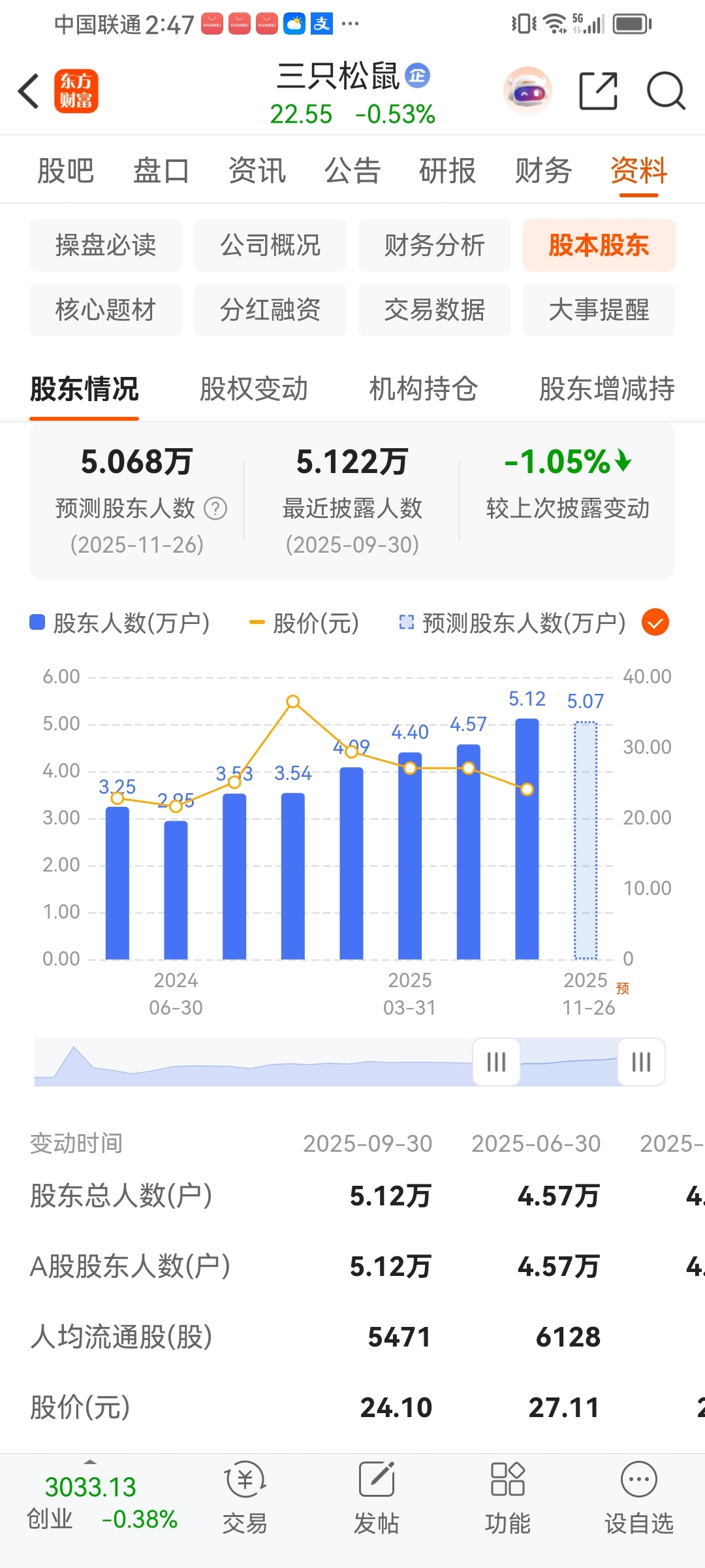 $三只松鼠(SZ300783)$ 股东户数增加了一倍,散户接的筹码越多,主力仓位就越小,下方阴跌的空间就越大