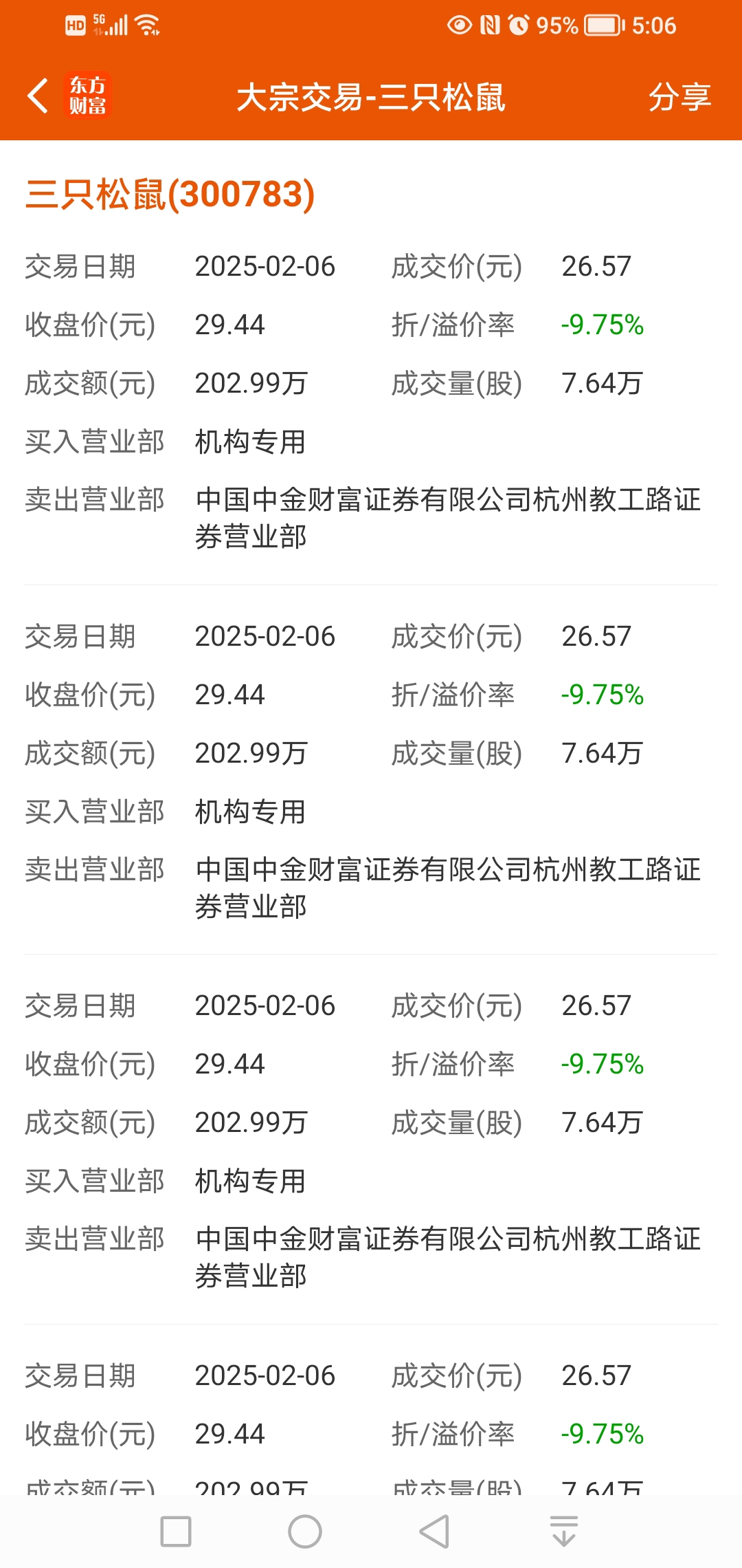 $三只松鼠(SZ300783)$ 大宗交易折价后23.98,你在怕啥?