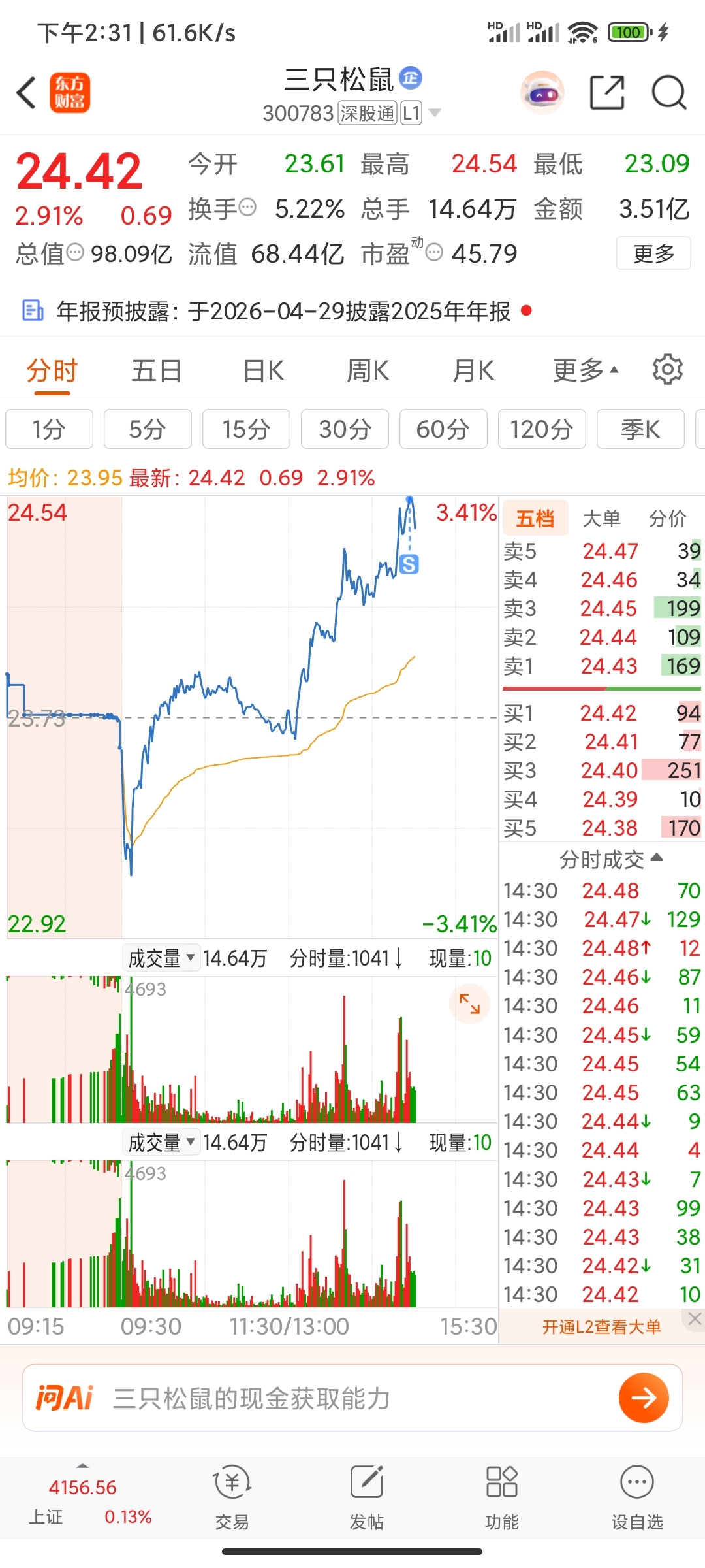 $三只松鼠(SZ300783)$ 嘻嘻!我又走了