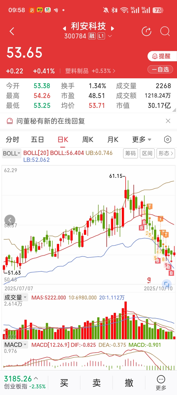 $利安科技(SZ300784)$ 操,59块多买的,一路跌