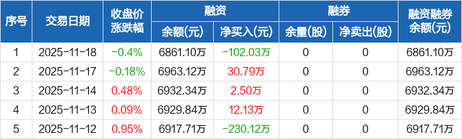 利安科技:融资净偿还102.03万元,融资余额6861.1万元(11-18)