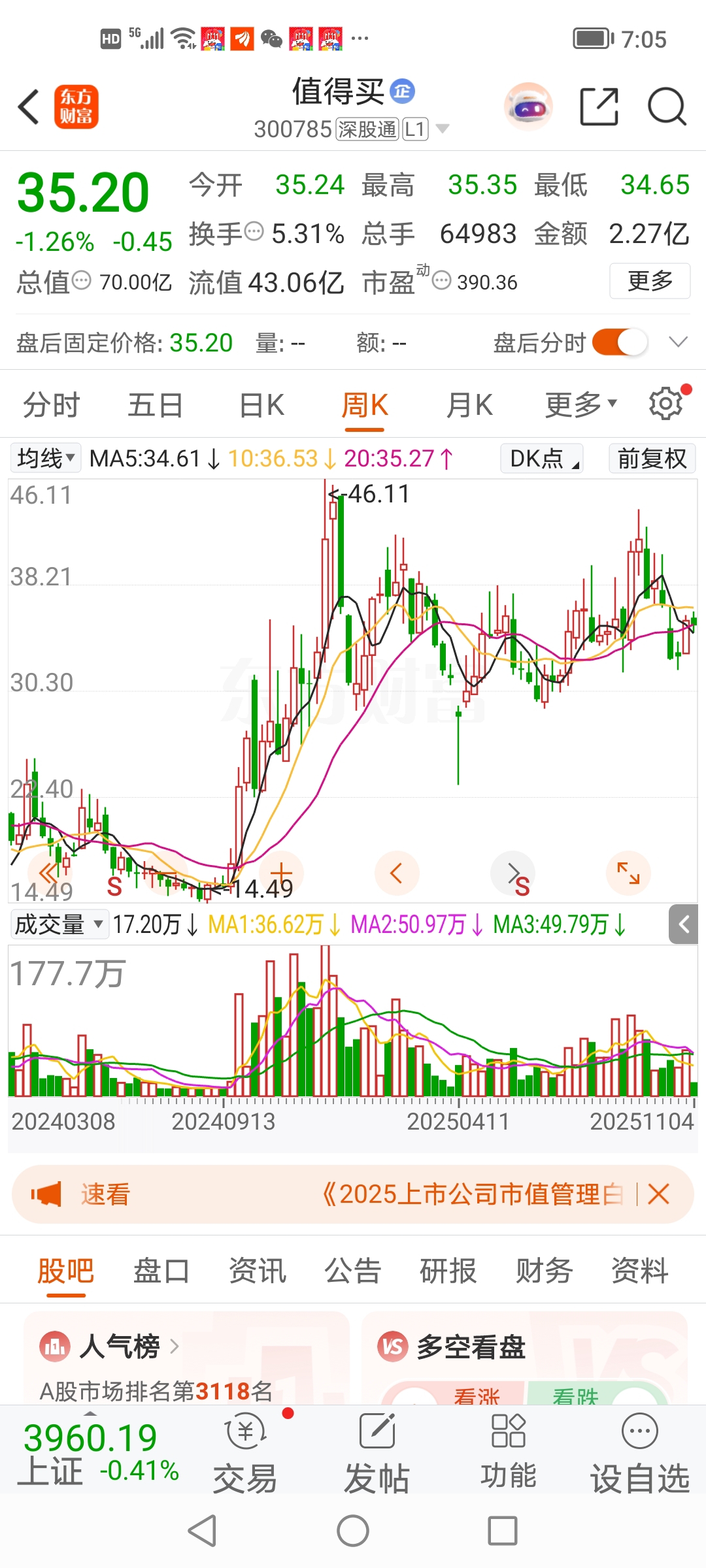 $值得买(SZ300785)$ 值得买股价是从十四元上来的股价己翻翻了回调很正常,耐心等待破三十元后少量补仓。