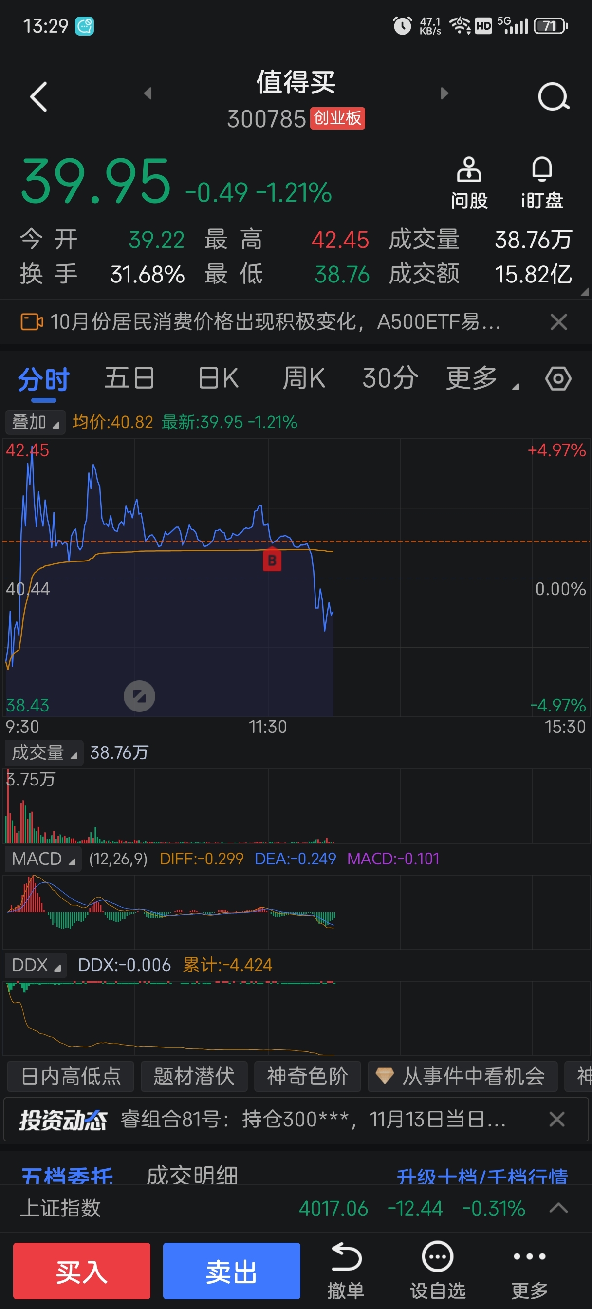 $值得买(SZ300785)$ 一买就跌 主力监控我了