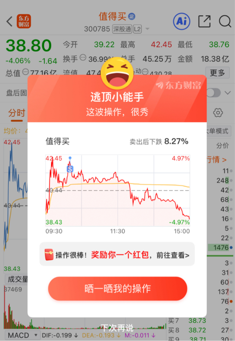 $值得买(SZ300785)$ 反正昨天卖飞了,今天就都卖了吧,再见,祝留下的好运!