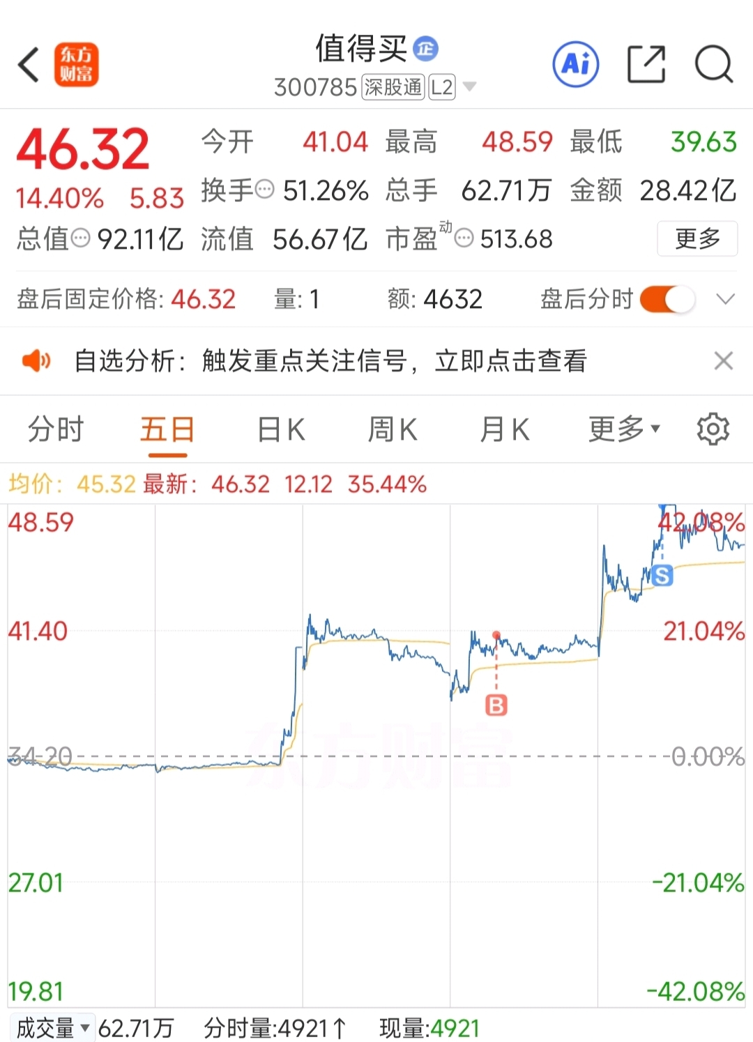 $值得买(SZ300785)$ 涨停板立马提裤子跑路