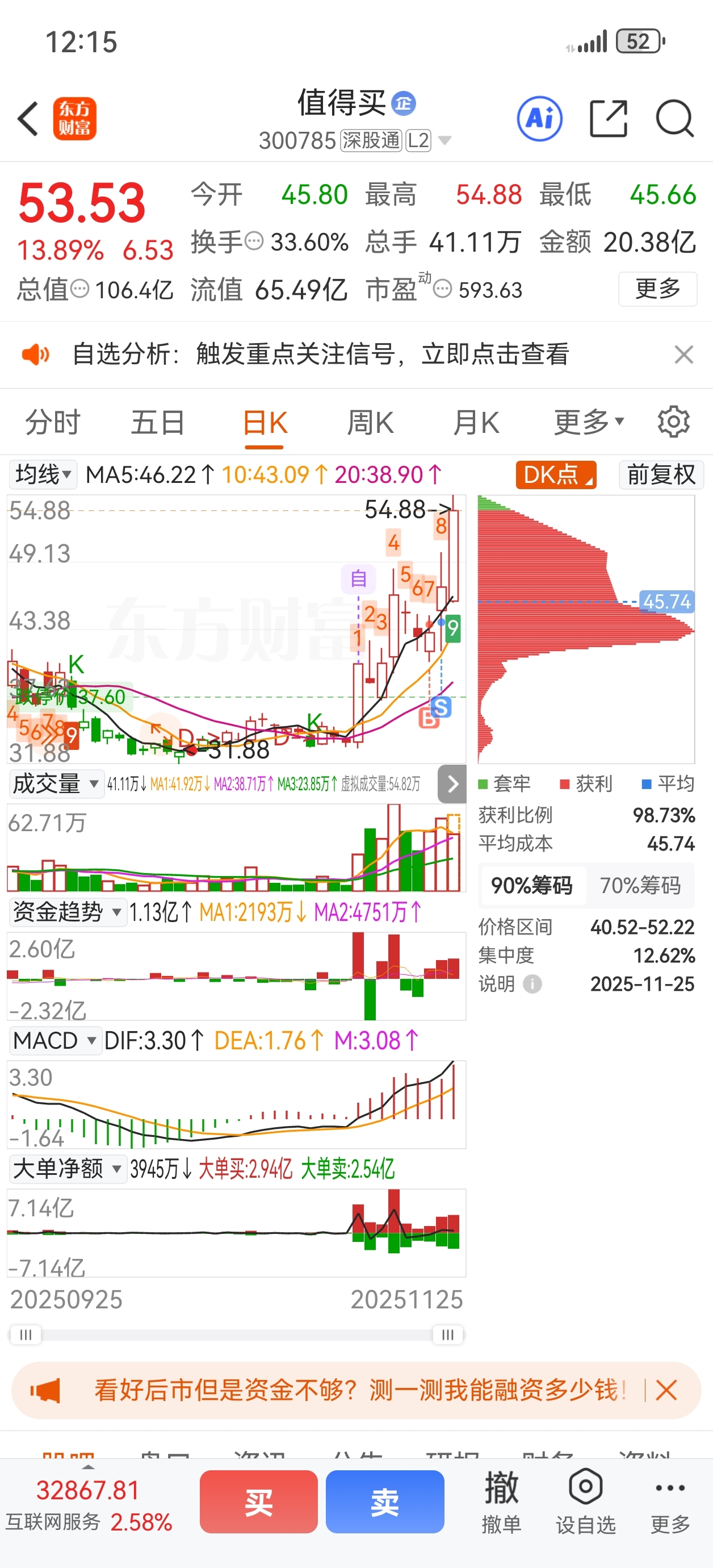 $值得买(SZ300785)$ 为啥要盯盘,被洗出去了。