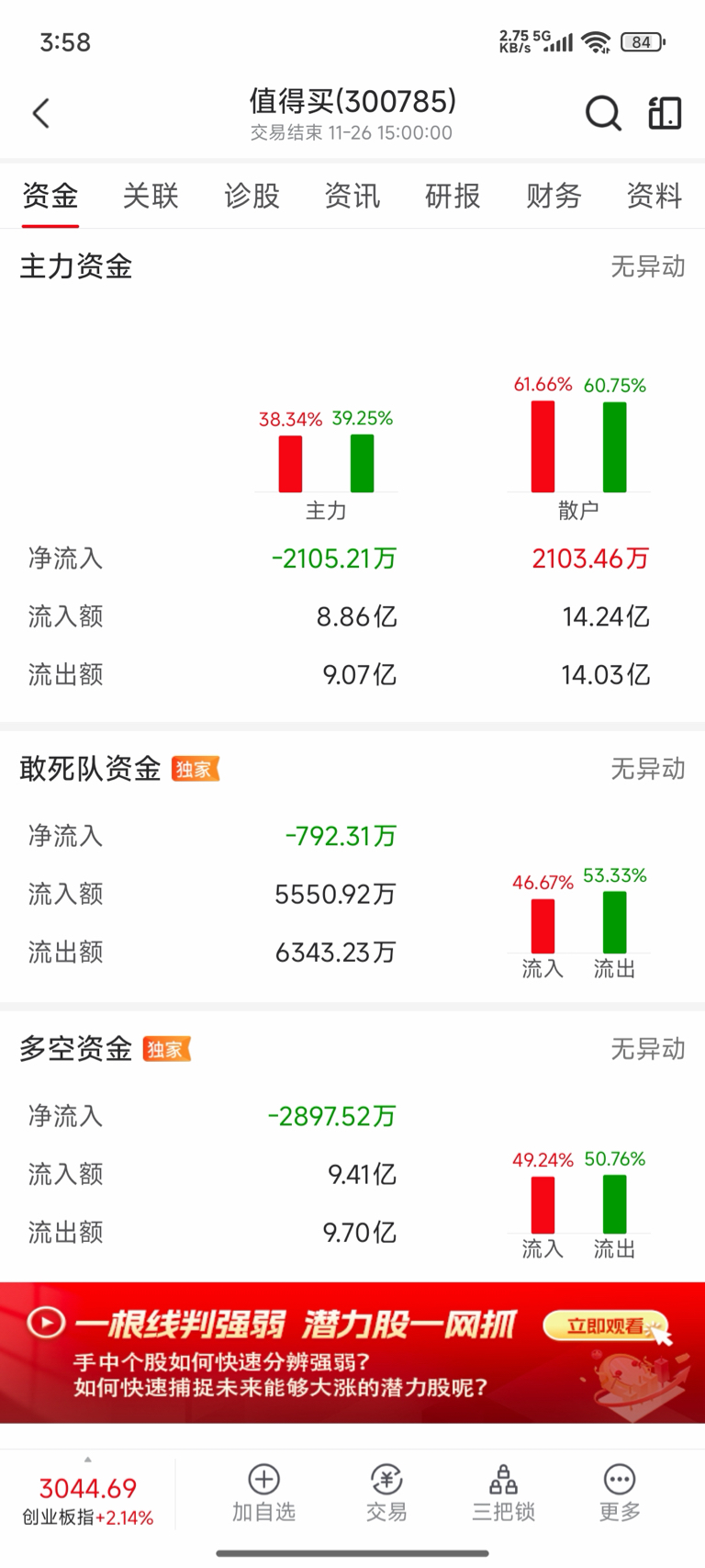 $值得买(SZ300785)$ 有没有同花顺的暗盘,这个软件的资金也显示出货了