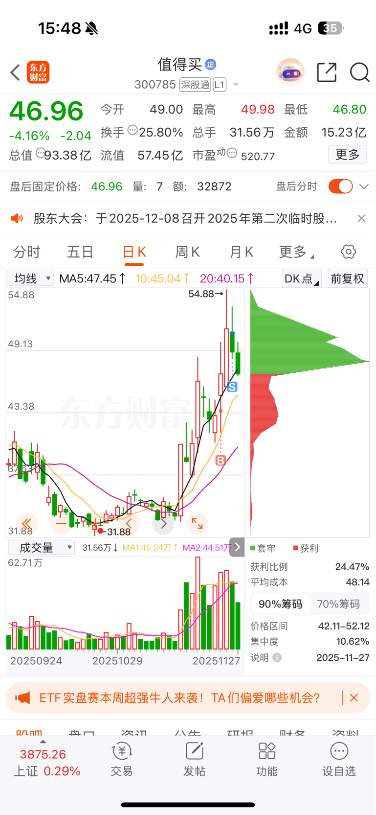 $值得买(SZ300785)$ 筹码峰移了不少啊
