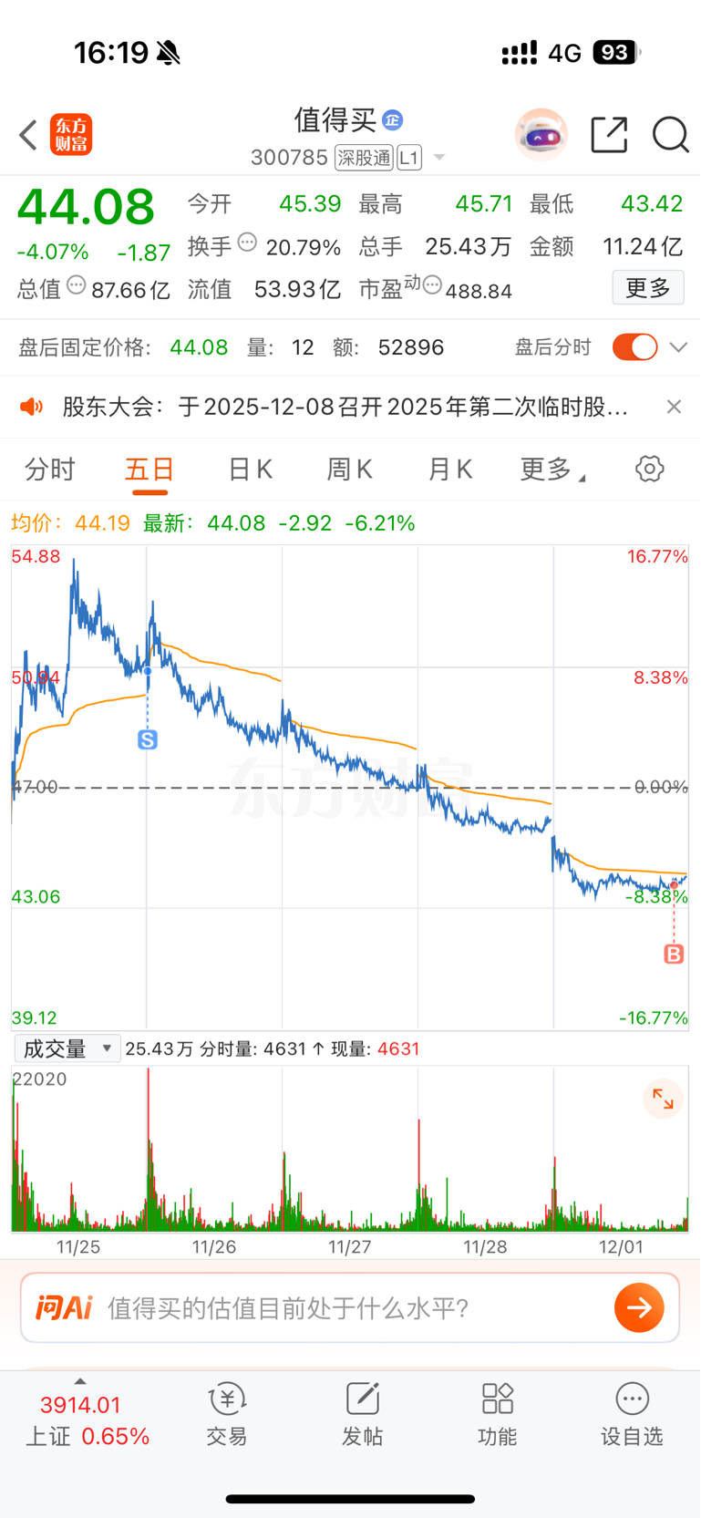 $值得买(SZ300785)$ 明天能红着出来吗?