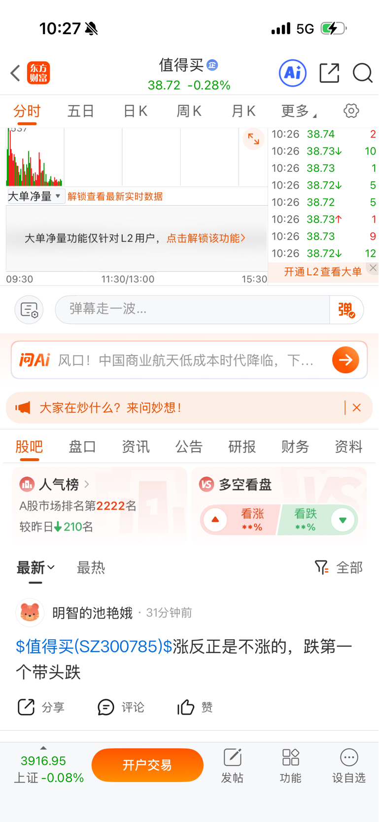 人气榜也跌到2222神奇数字了,该反弹了吧