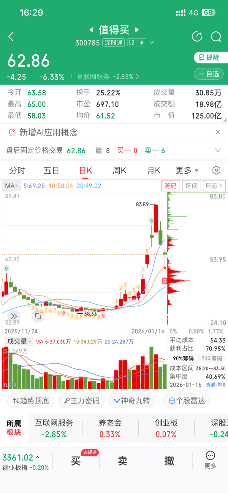 $值得买(SZ300785)$ 不错,能V上来的都是好票。周五打个底仓,买入点感觉很好,当天就红5.6。爽死啦!哈哈哈。