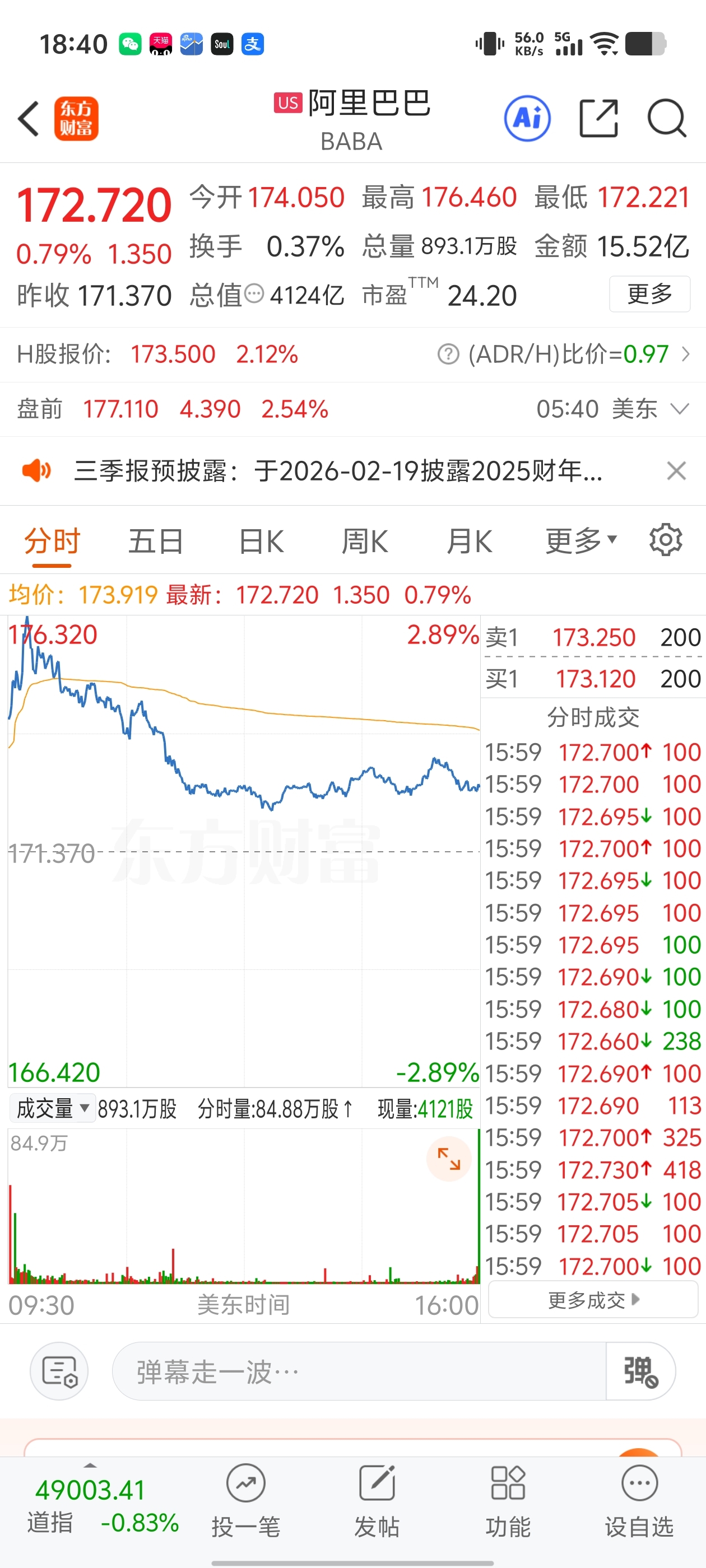 $值得买(SZ300785)$ 阿里巴巴盘前涨了