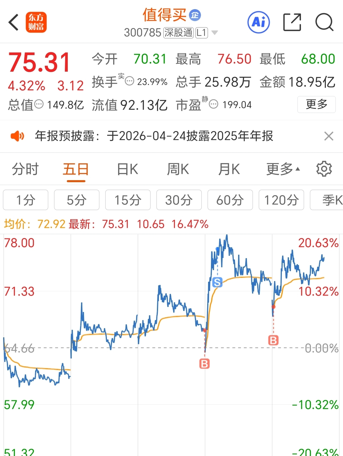 $值得买(SZ300785)$ 还不错,低开无脑买,高开无脑卖,卖飞为止,即使不吃肉也能喝点汤