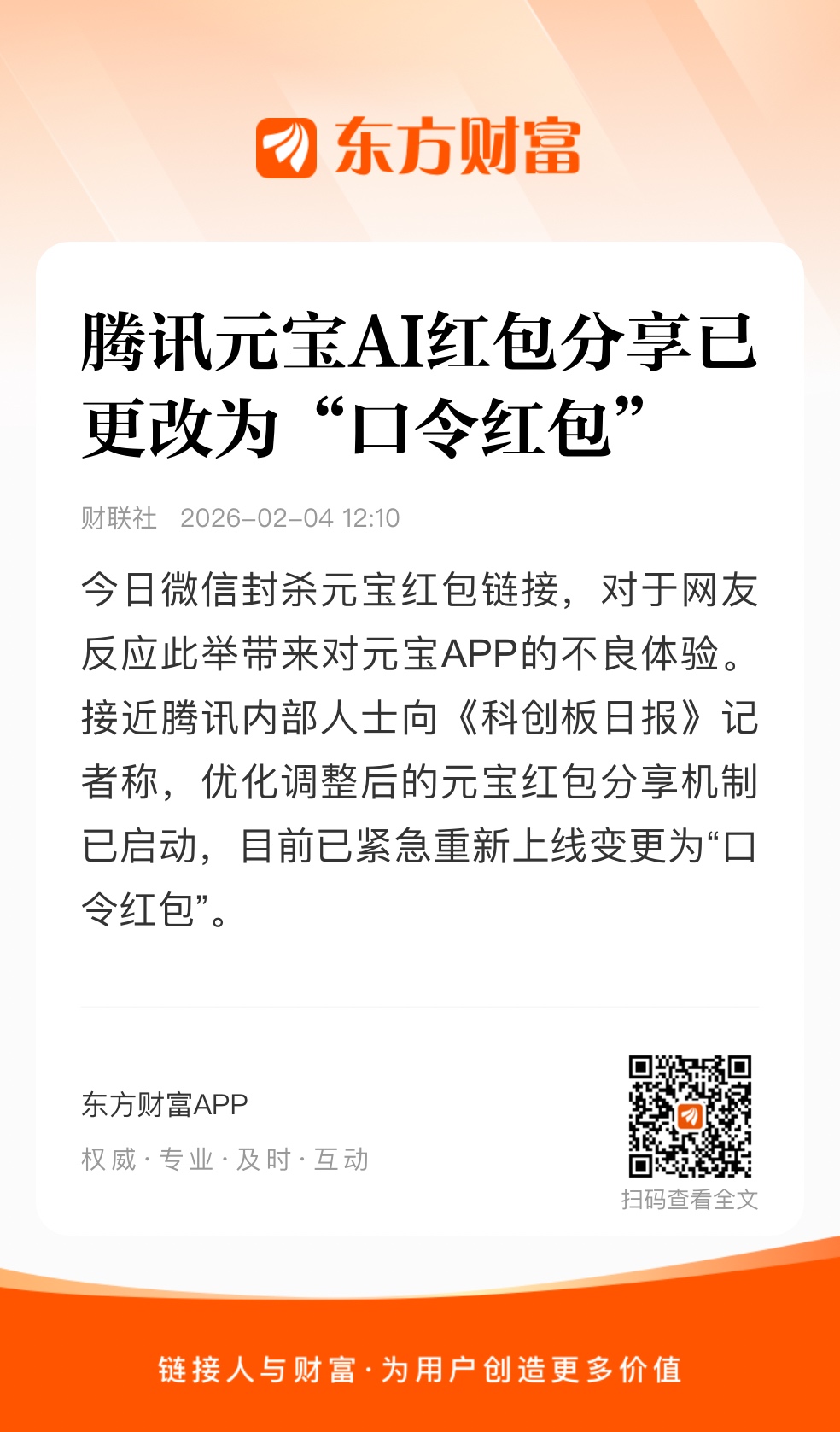 今日微信封杀元宝红包链接,对于网友反应此举带来对元宝APP的不良体验。接近腾讯内部人士向《科创板日报》记者称,优化调整后的元宝红包分享机制已启动,目前已紧急重新上线变更为“口令红包”。