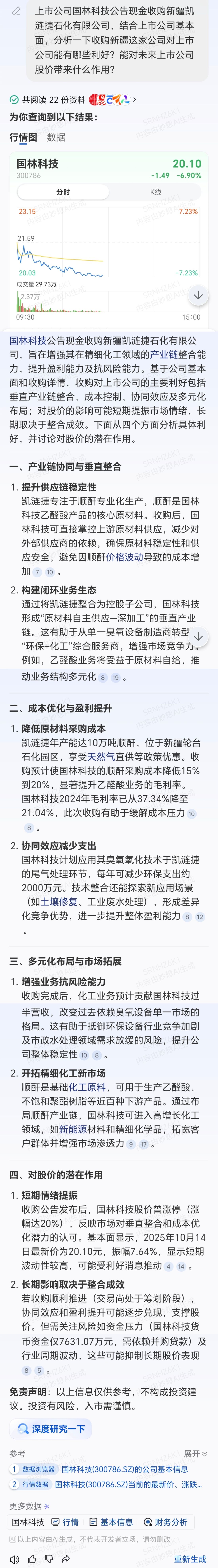 $国林科技(SZ300786)$ 大家都在谈新凯来,其实支撑这波上涨的主要是已经公告的并购题材,这个才是实质性的利好。我用妙想AI了一下,AI回复得中规中矩的,大家对这次收购还有啥其他的看法?