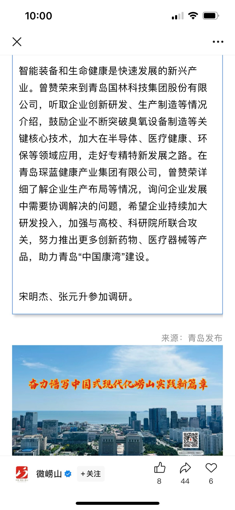 青岛市委书记今天调研国林,作为青岛半导体龙头企业,市值100亿指日可待。估值也会