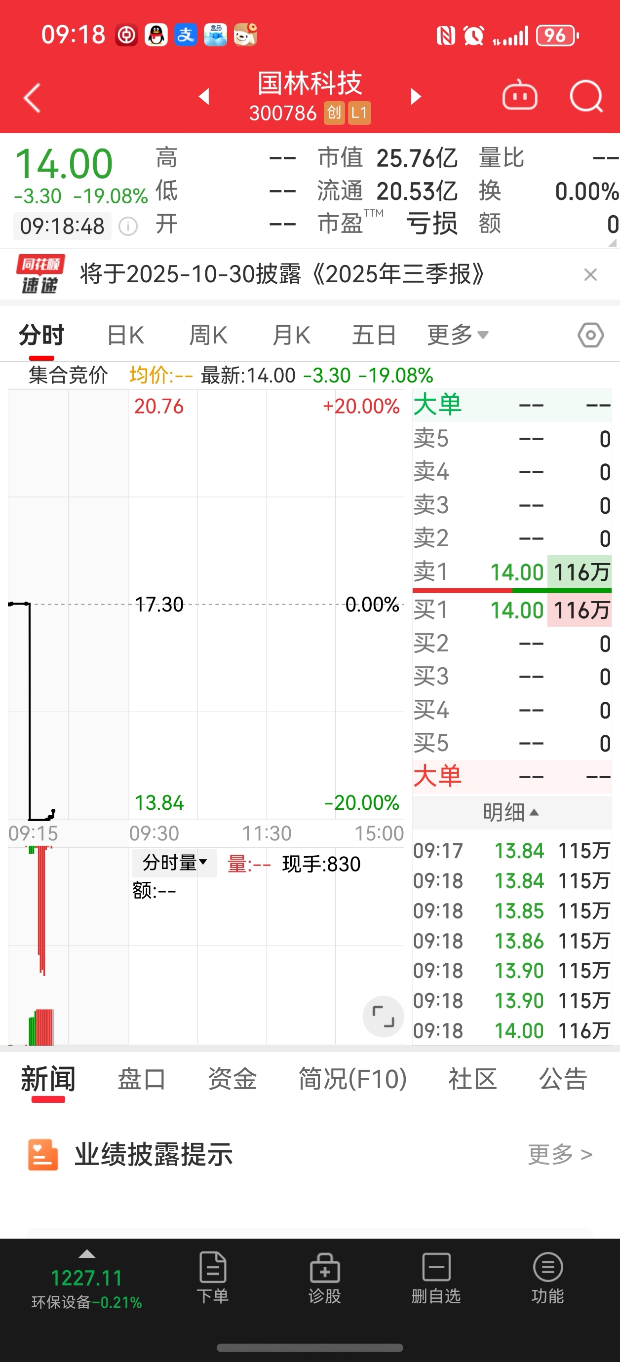 连续大跌一个月了,大A昨天都上4000点了。国林原地踏步?今天集合竞价国林又跌停
