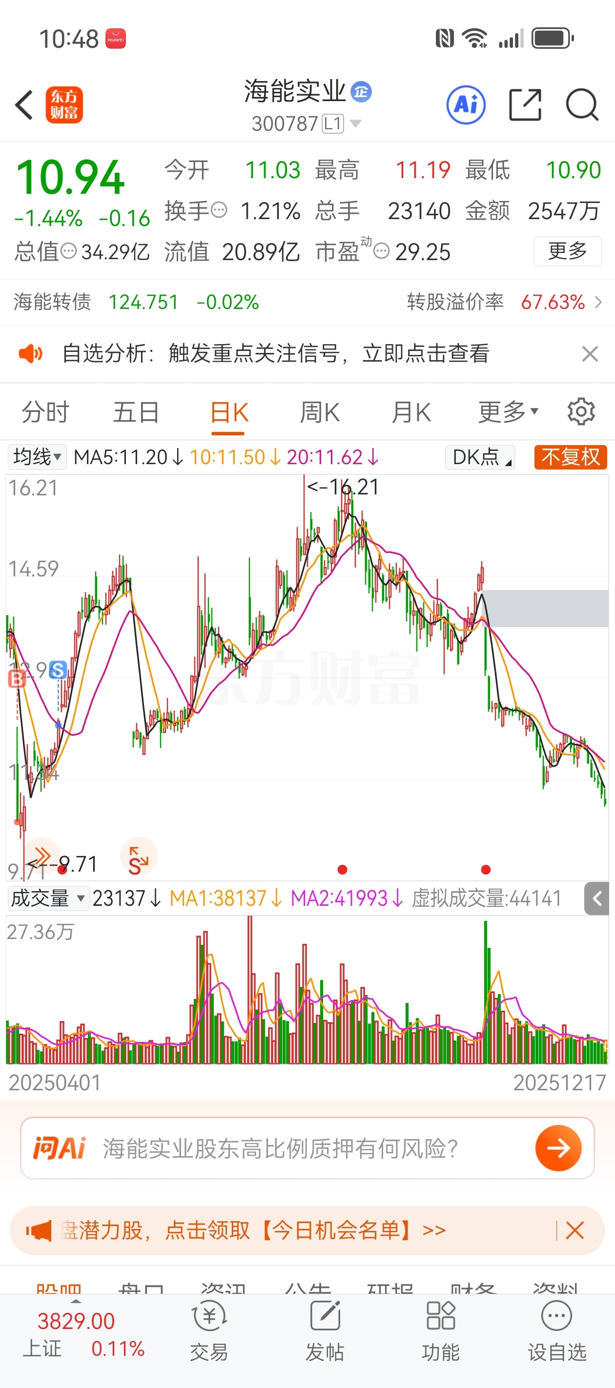 $海能实业(SZ300787)$ 又回到起点,却不敢买了