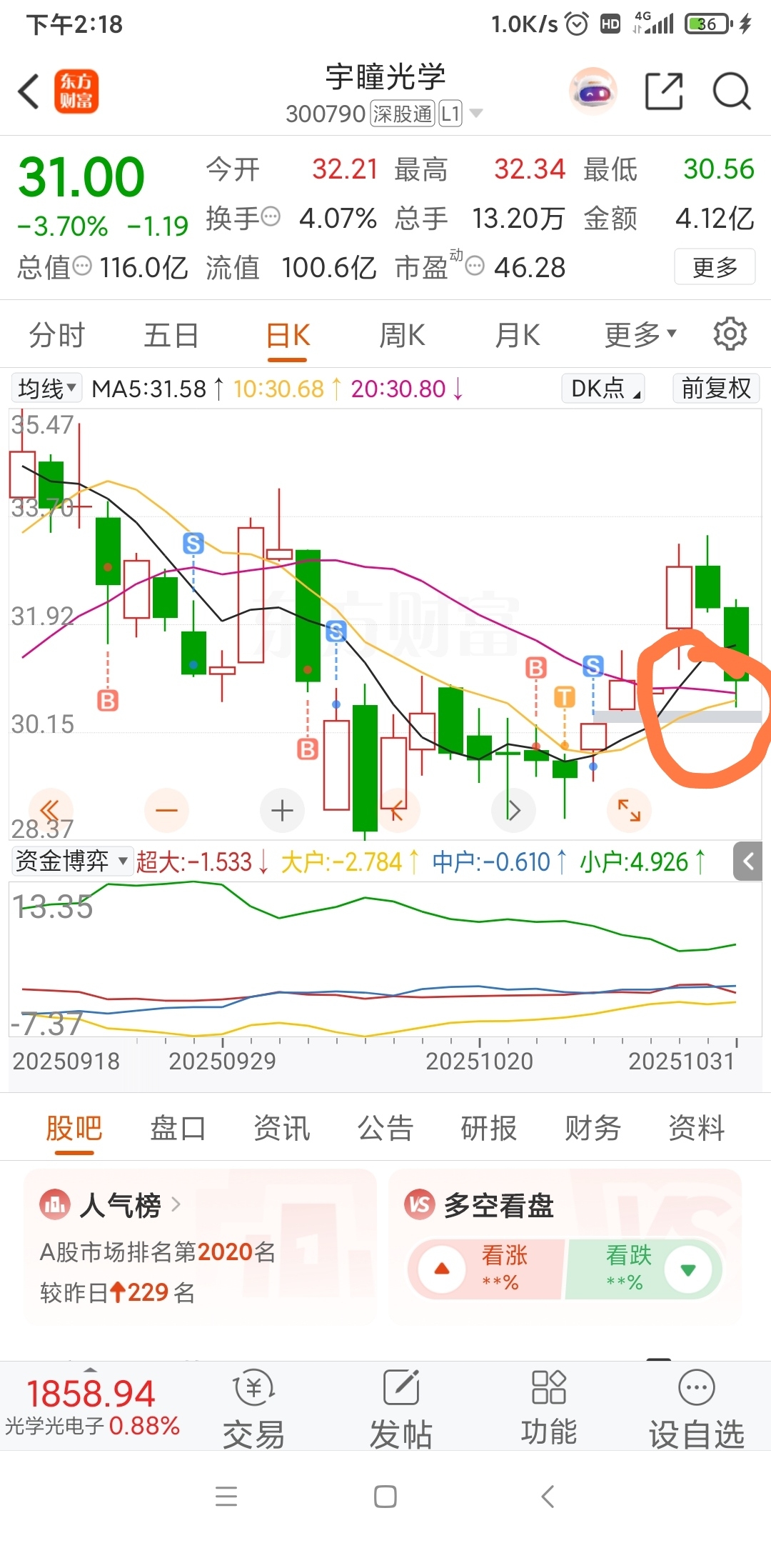 $宇瞳光学(SZ300790)$ 不破30为强势,破了就不好判断了