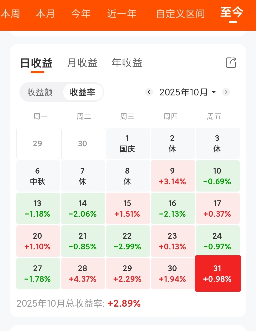 $宇瞳光学(SZ300790)$ 本月2.89个点收益。7天长假影响我创收