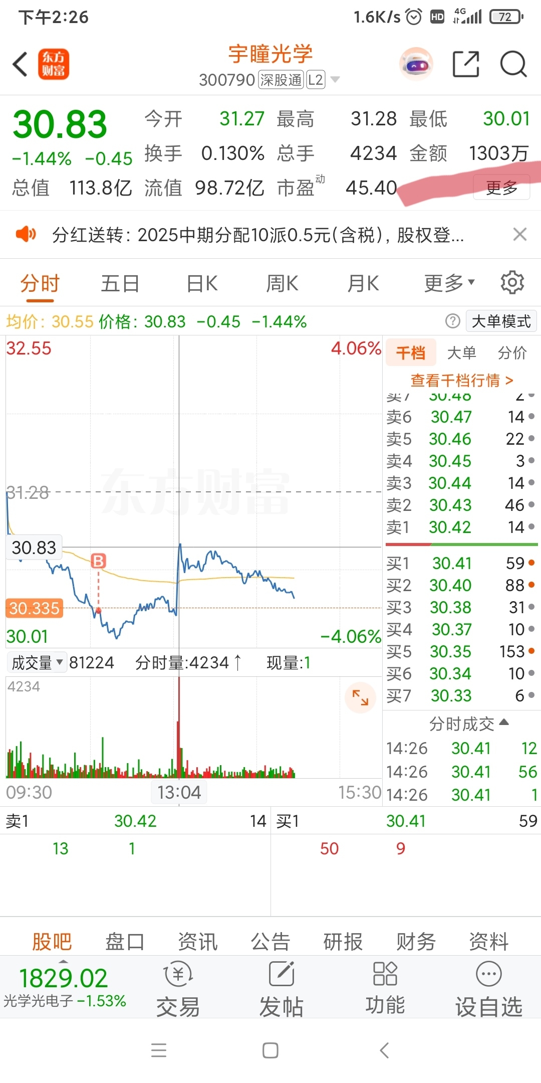 $宇瞳光学(SZ300790)$ 人家1300万买入直线拉升,你们不敢买