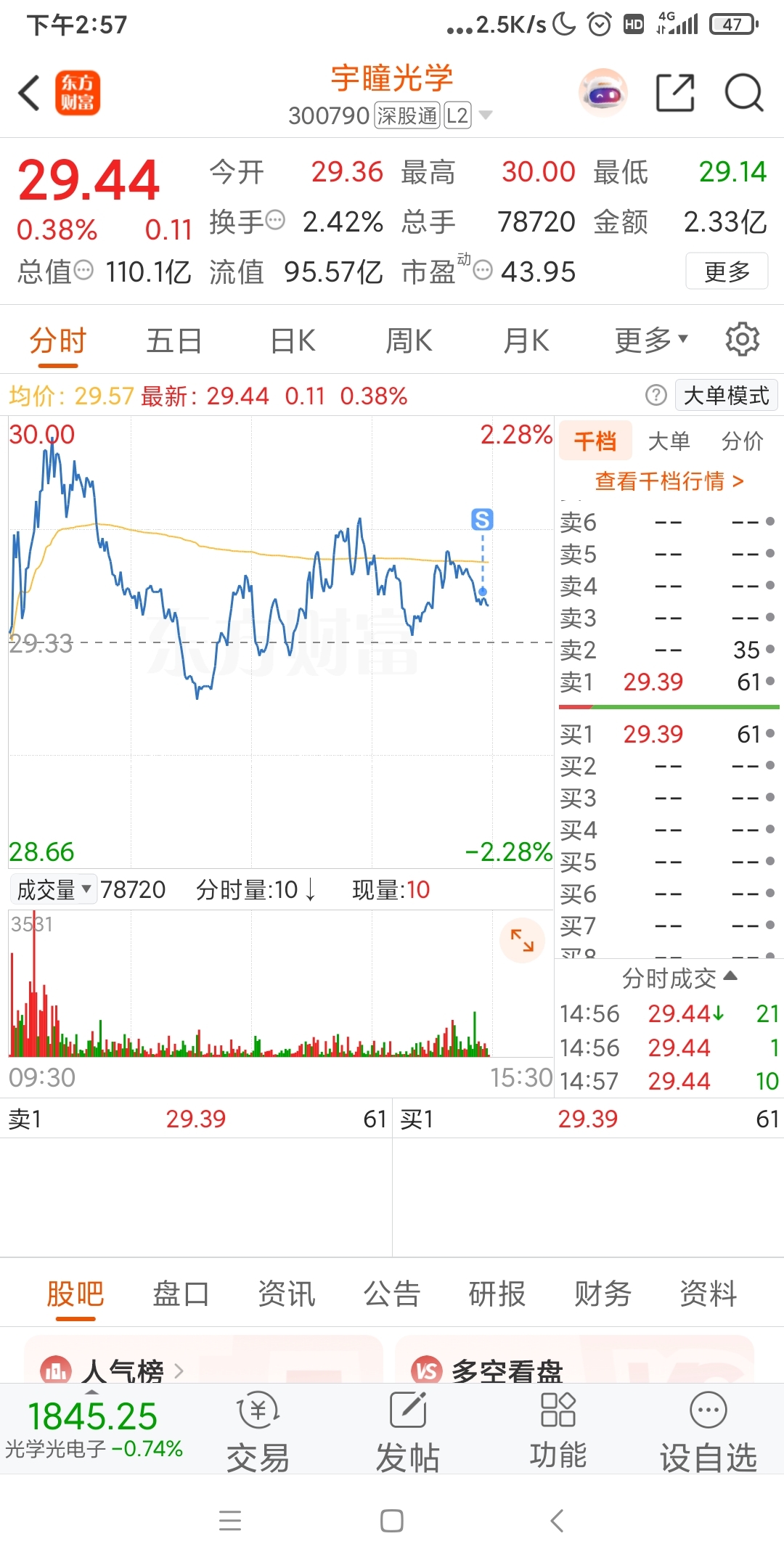 $宇瞳光学(SZ300790)$ 开盘走,怕大涨,今天,真水准