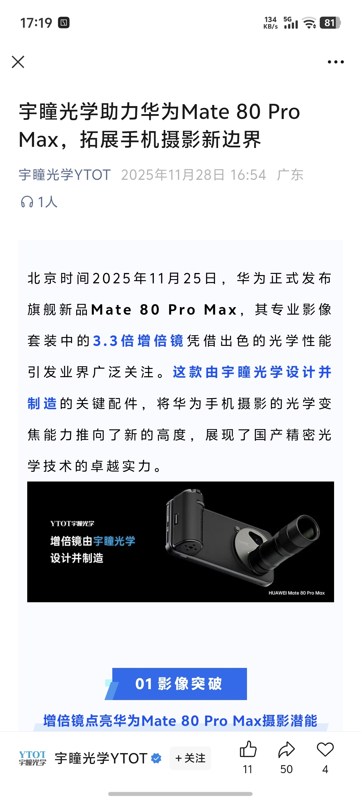 $宇瞳光学(SZ300790)$ vivo 华为