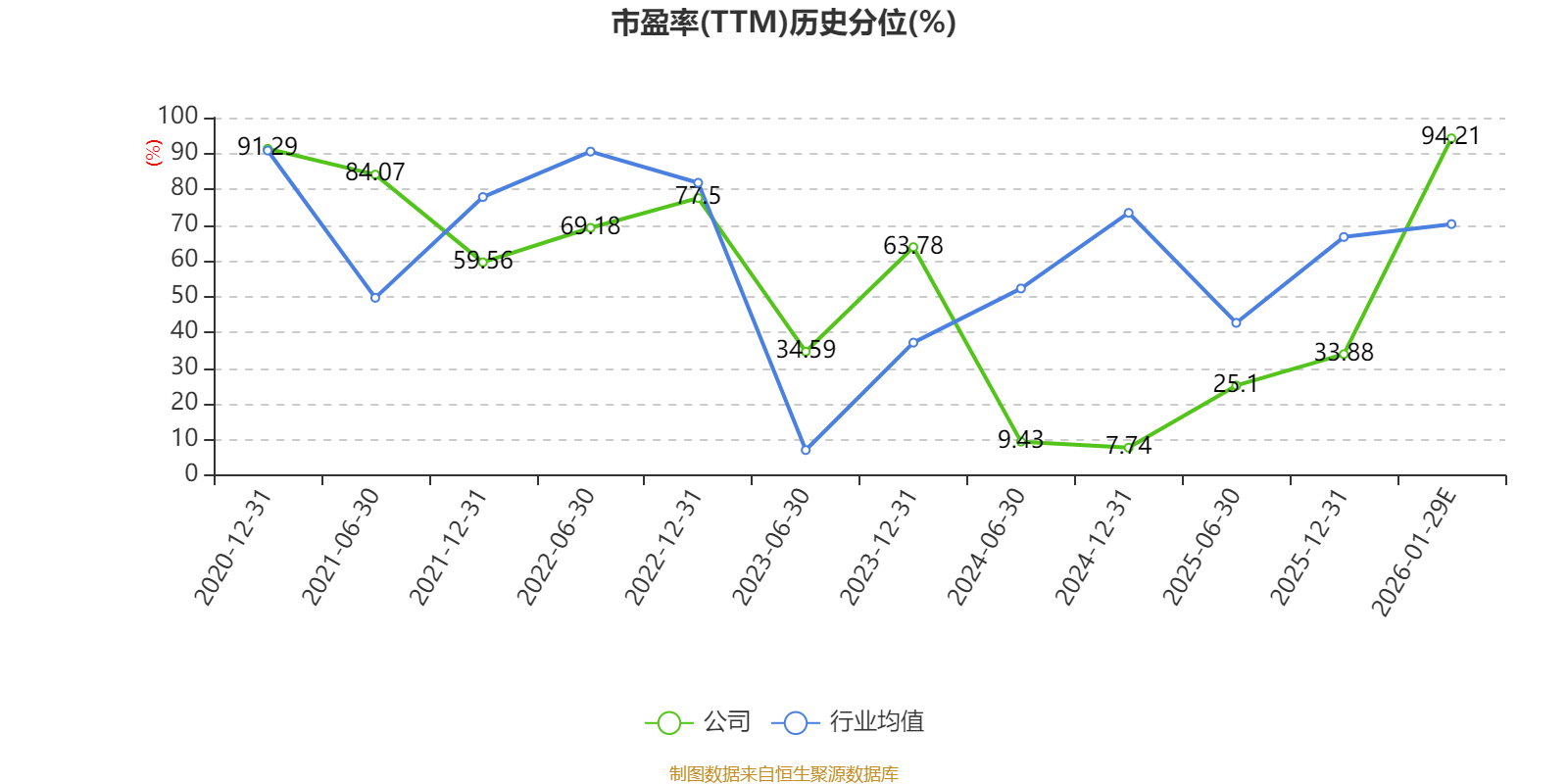 以本次披露业绩预告均值计算,公司近年市盈率(TTM)图如下所示: