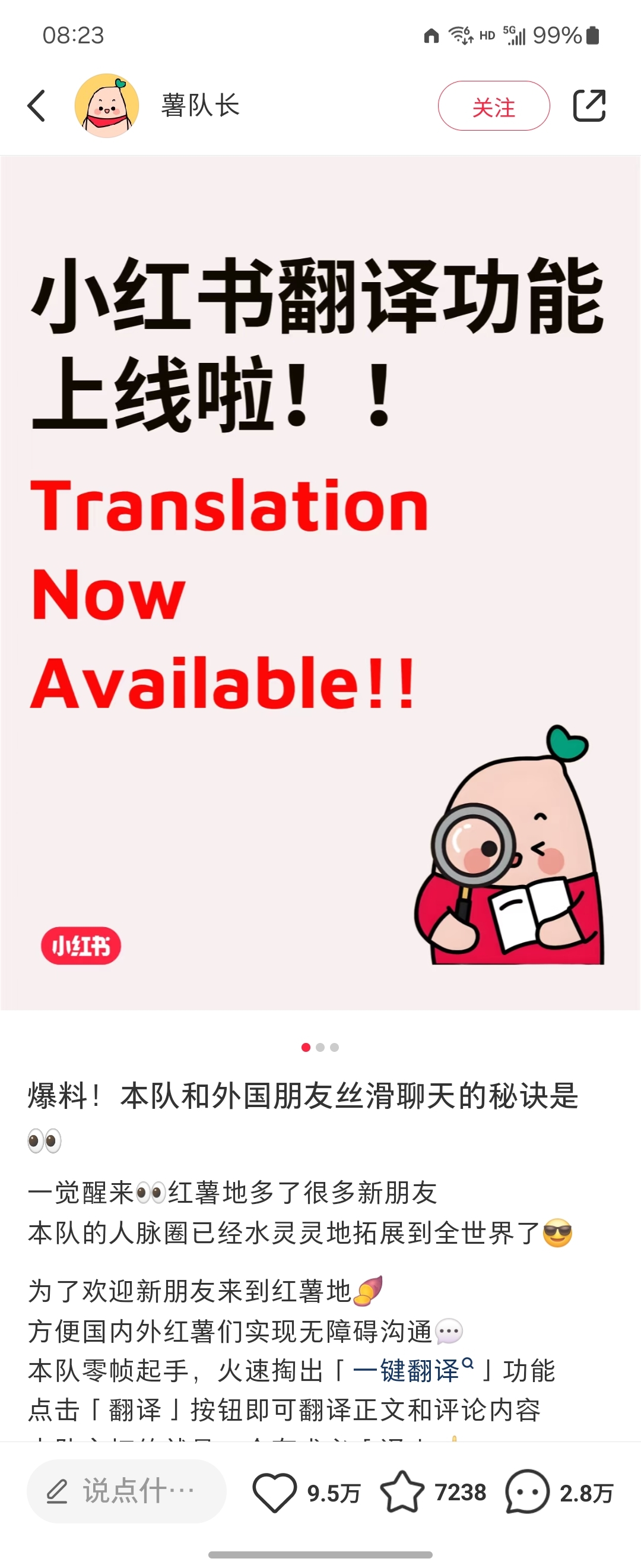 小红书更新,上线翻译功能!无论洋抖如何,小红书这波已经获得了泼天的流量,这并不是