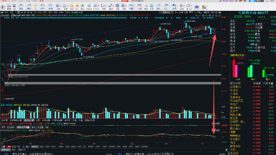 互联网板块下跌动能未见衰减到红色,板块在5日线下方,未见明显的底分型,被均线压制