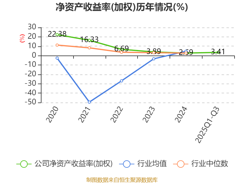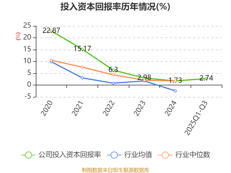 盈利能力方面, 2025年前三季度公司加权平均净资产收益率为3.41%,同比上升0.09个百分点。公司2025年前三季度投入资本回报率为2.74%,较上年同期上升0.04个百分点。