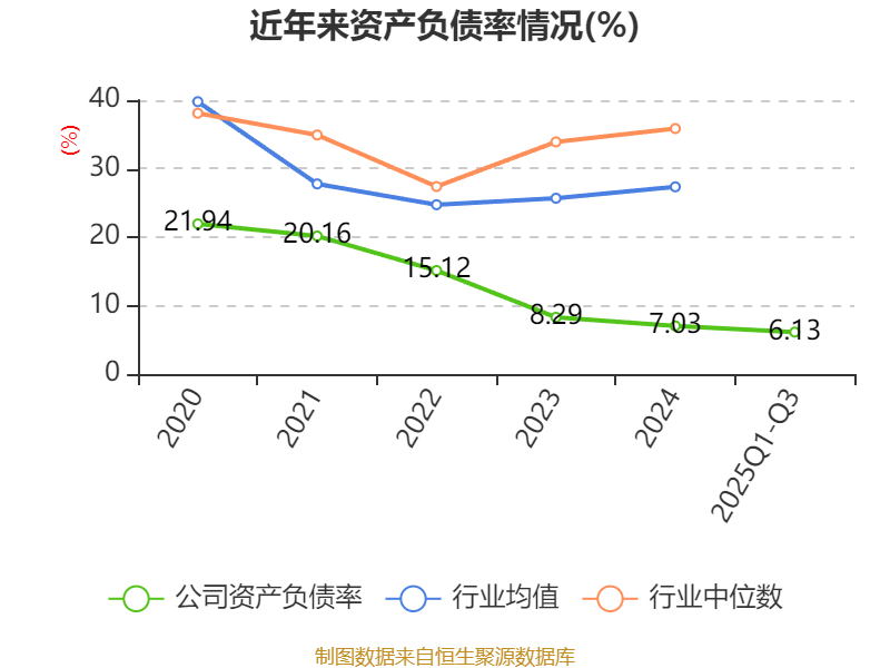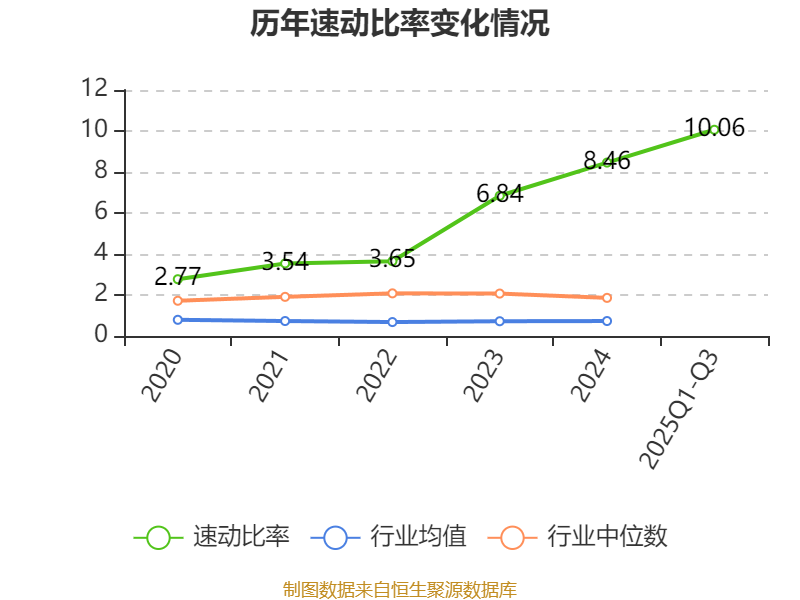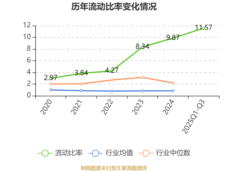 2025年前三季度,公司流动比率为11.57,速动比率为10.06。