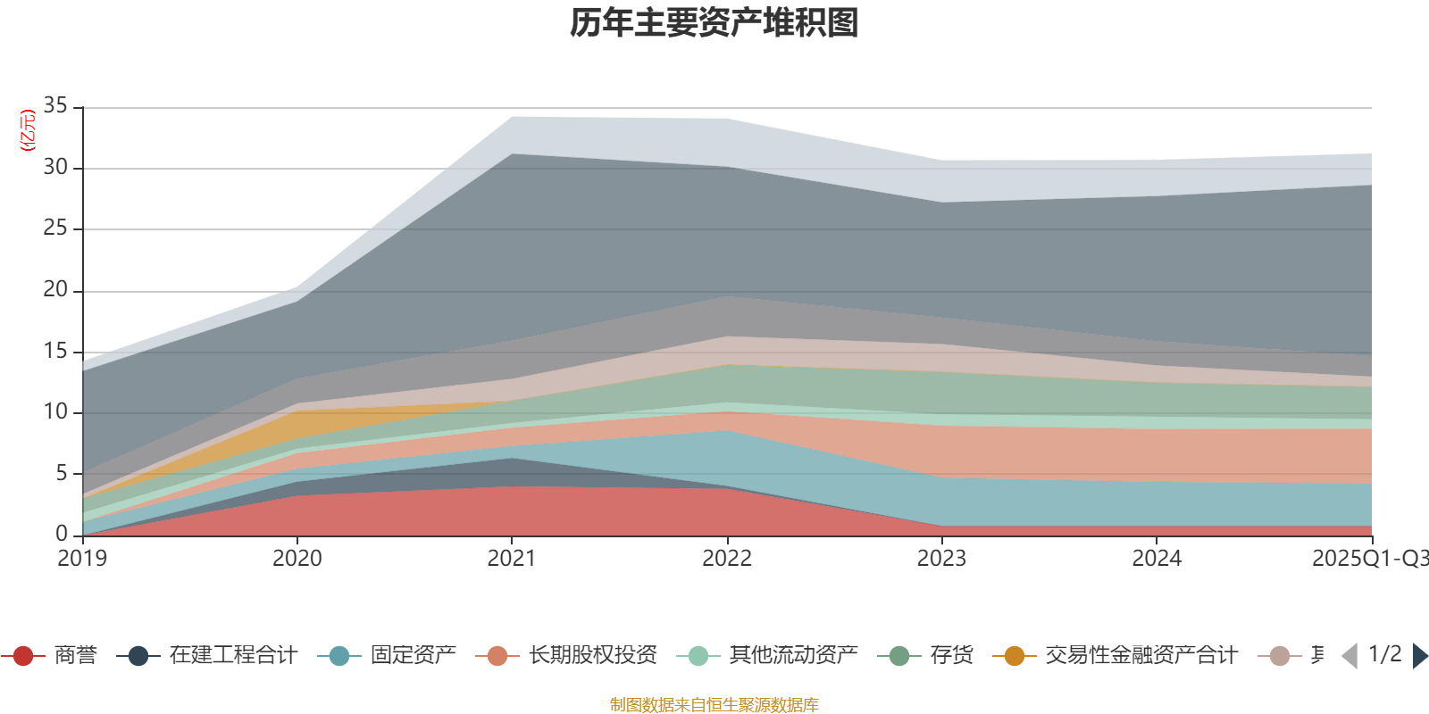 资产重大变化方面,截至2025年三季度末,公司货币资金较上年末增加17.95%,占公司总资产比重上升6.18个百分点;其他应收款(含利息和股利)较上年末减少41.17%,占公司总资产比重下降1.93个百分点;应收票据及应收账款较上年末减少14.49%,占公司总资产比重下降1.03个百分点;其他流动资产较上年末减少22.63%,占公司总资产比重下降0.78个百分点。