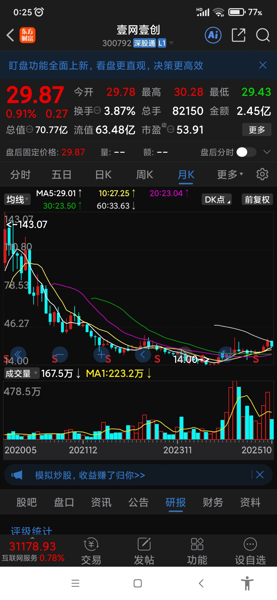 $壹网壹创(SZ300792)$ 壹网壹创大型底部形态明显