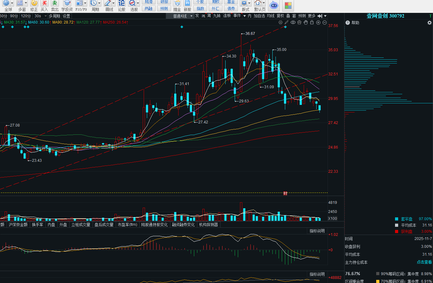 筹码峰都是套牢盘!明显下方没有主力了,这个太明显了!