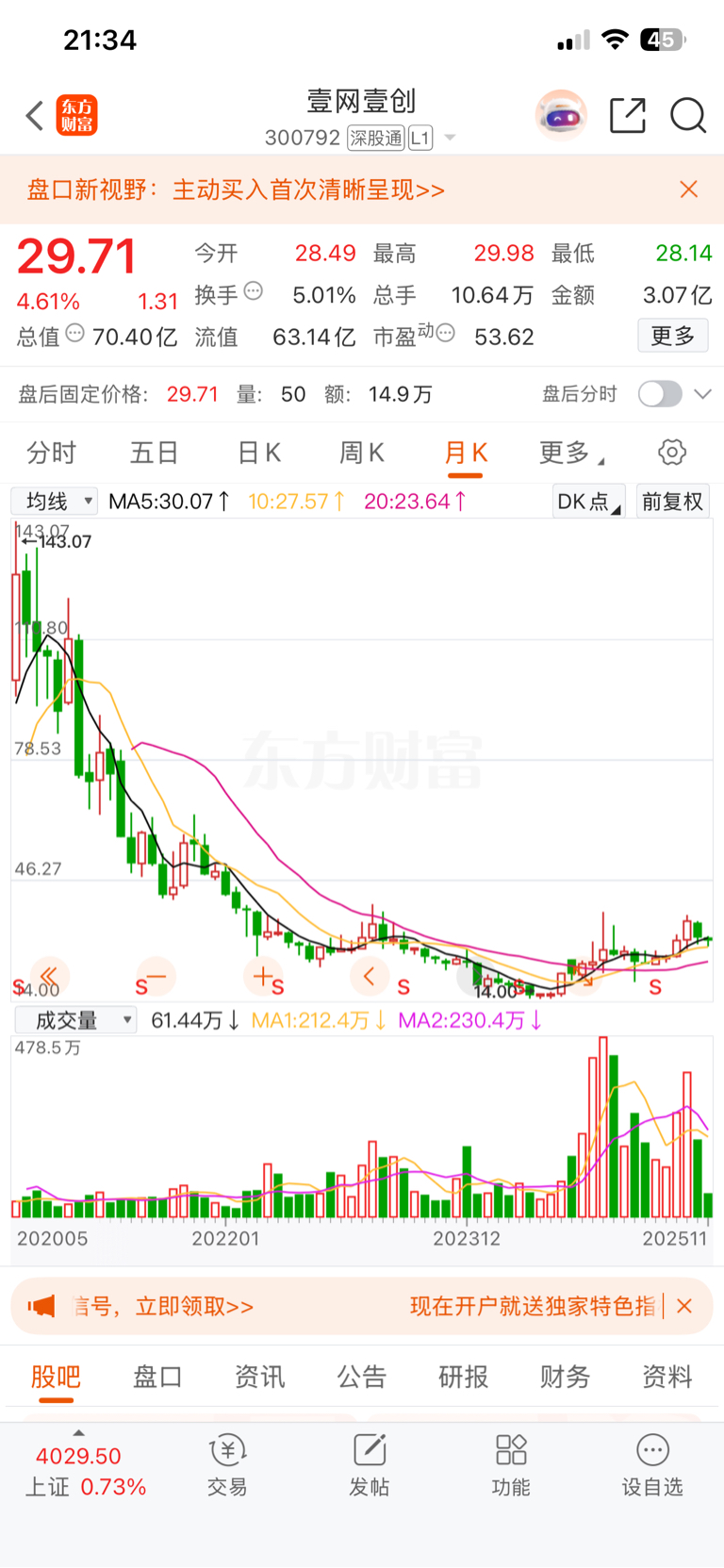 $壹网壹创(SZ300792)$ 空间巨大无比