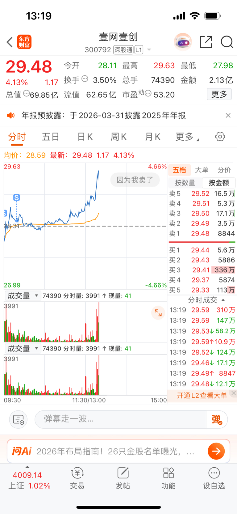 $壹网壹创(SZ300792)$ 因为我卖了,才涨