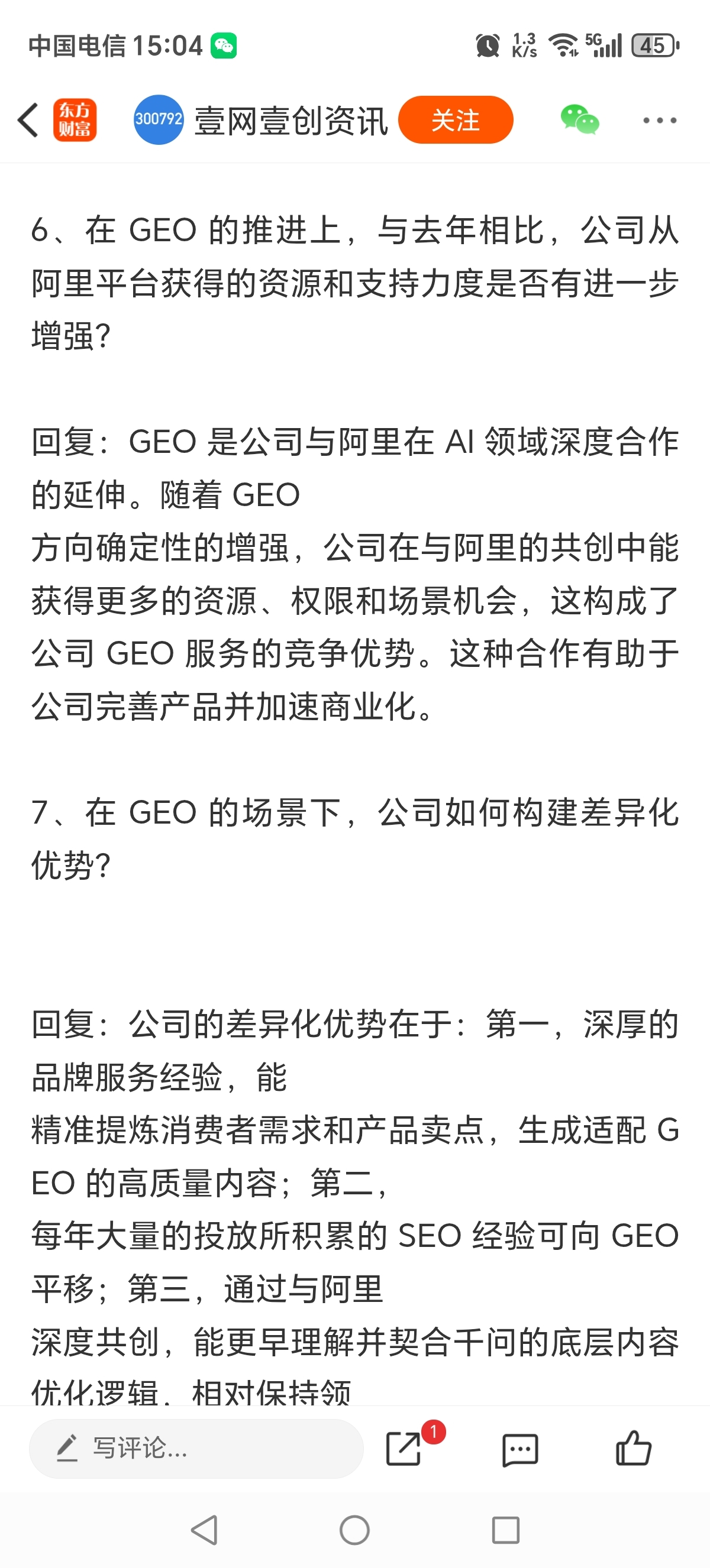 $壹网壹创(SZ300792)$ a股目前已经实锤的,正宗的GEO概念股之一。