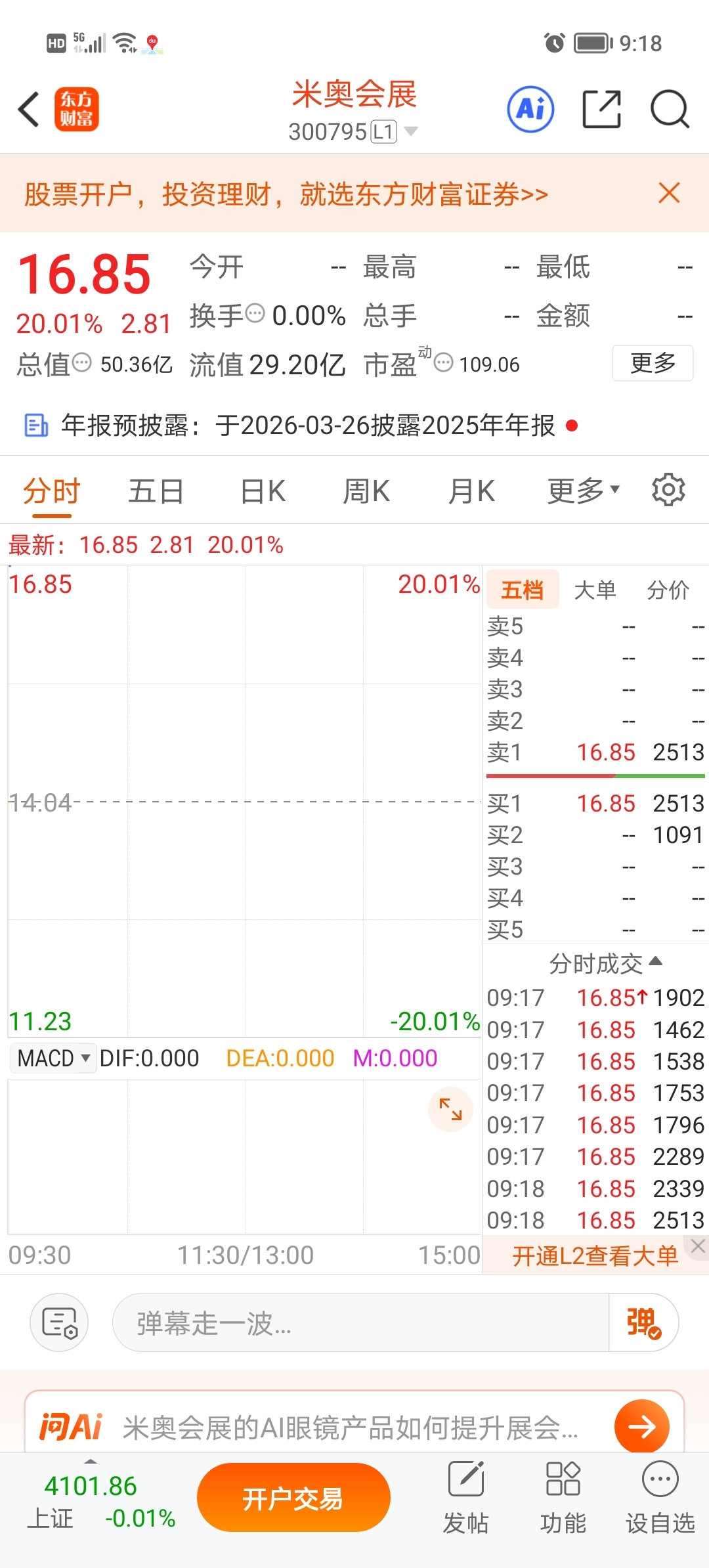 $米奥会展(SZ300795)$ 涨停了